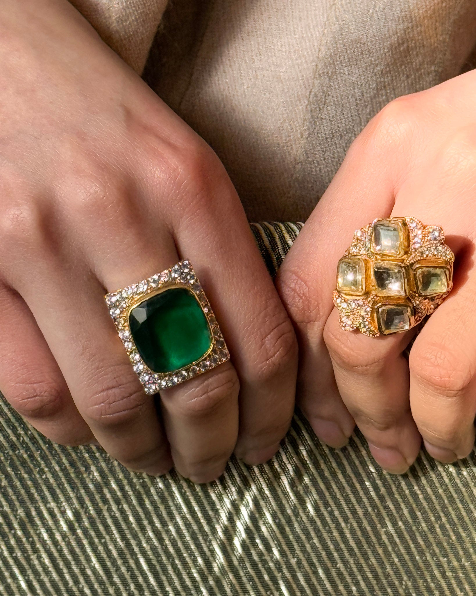 Polki ring handcrafted in gold-plated brass, finished with pave zircons