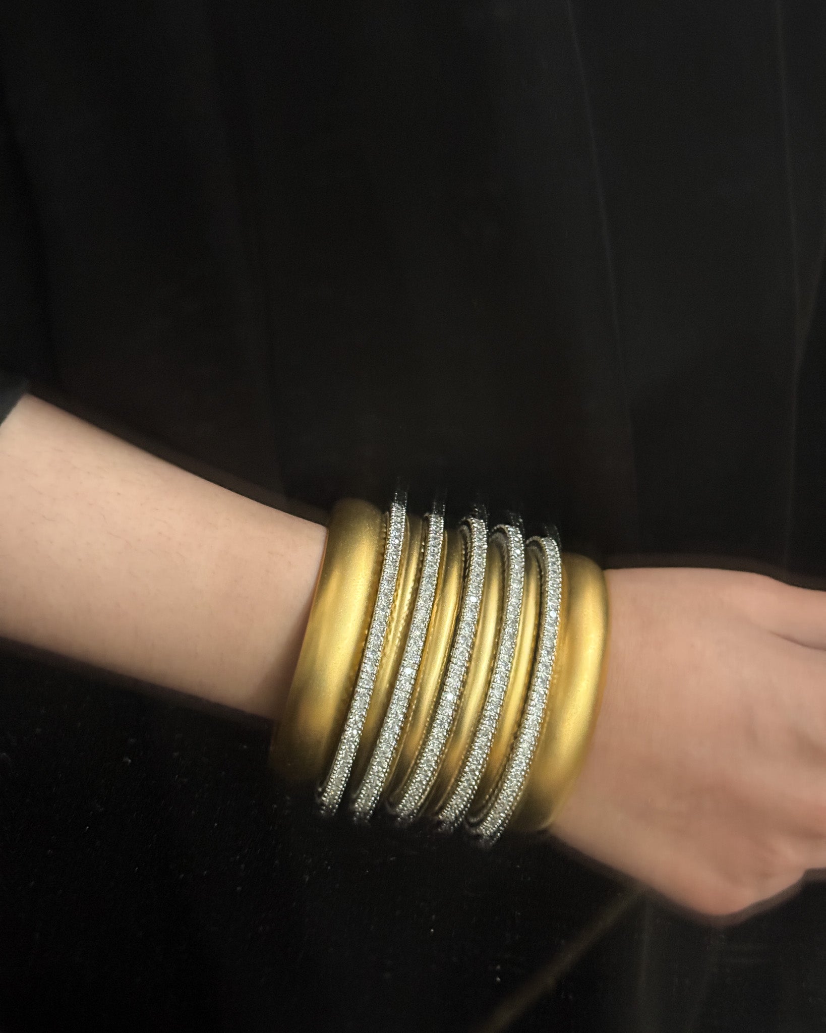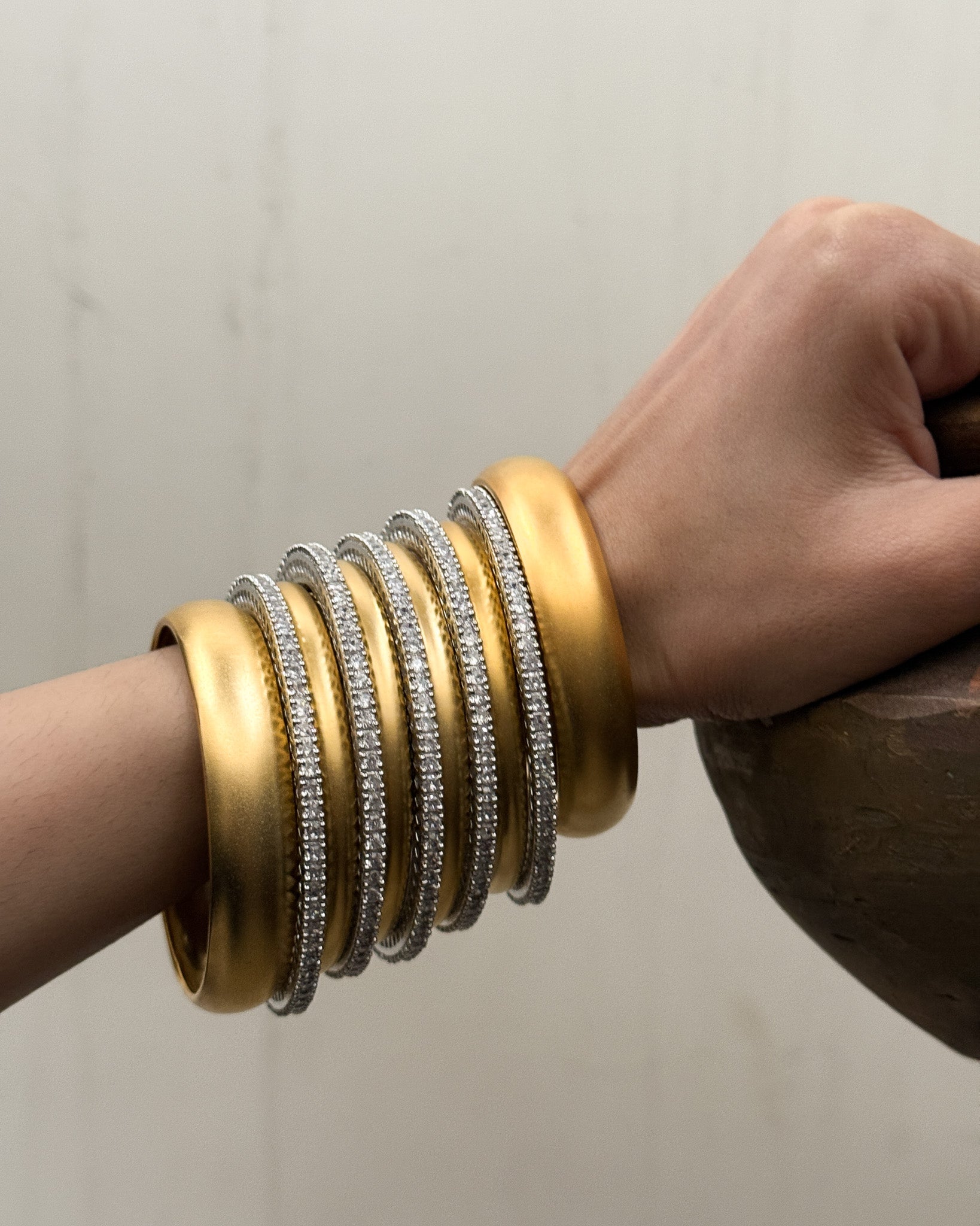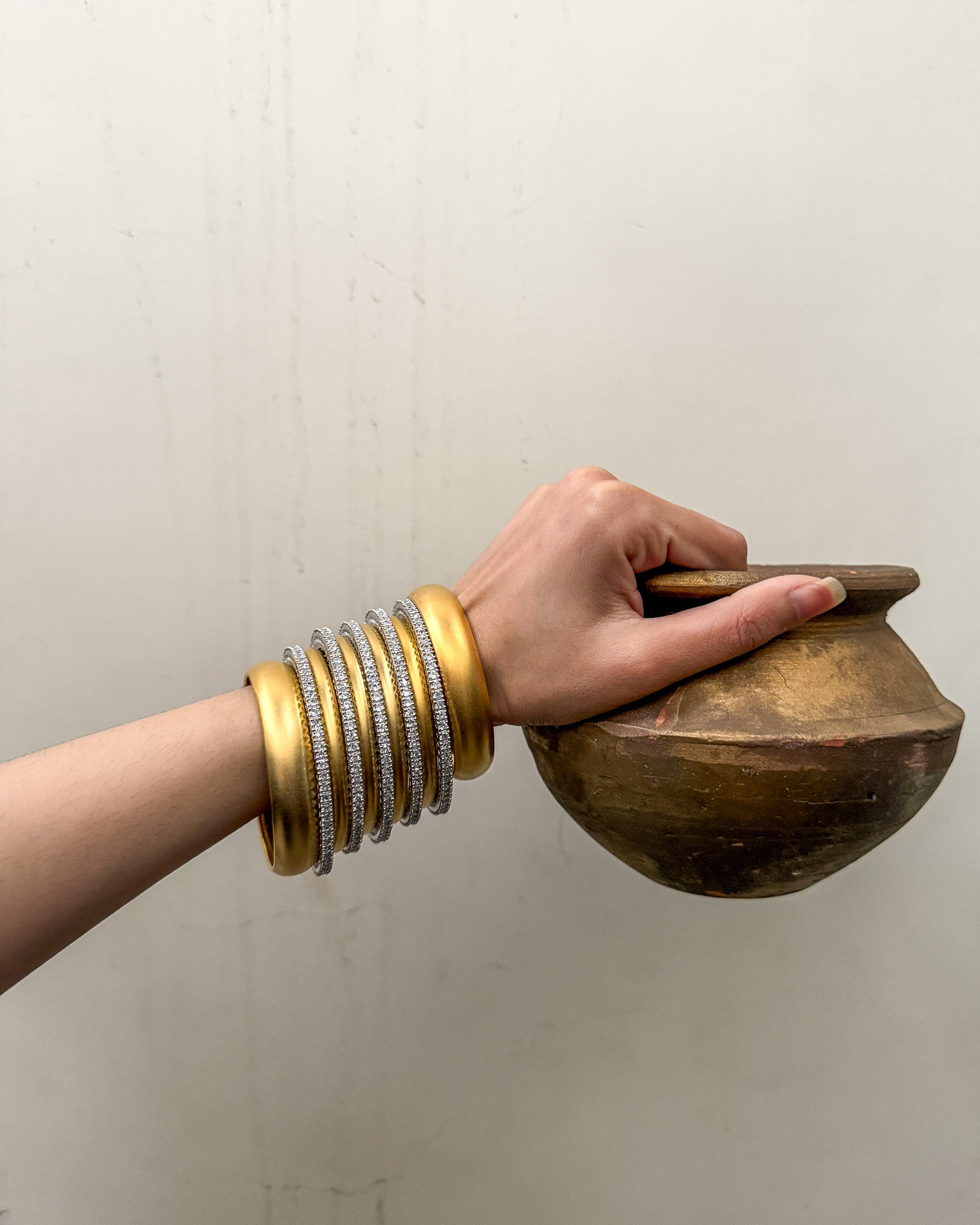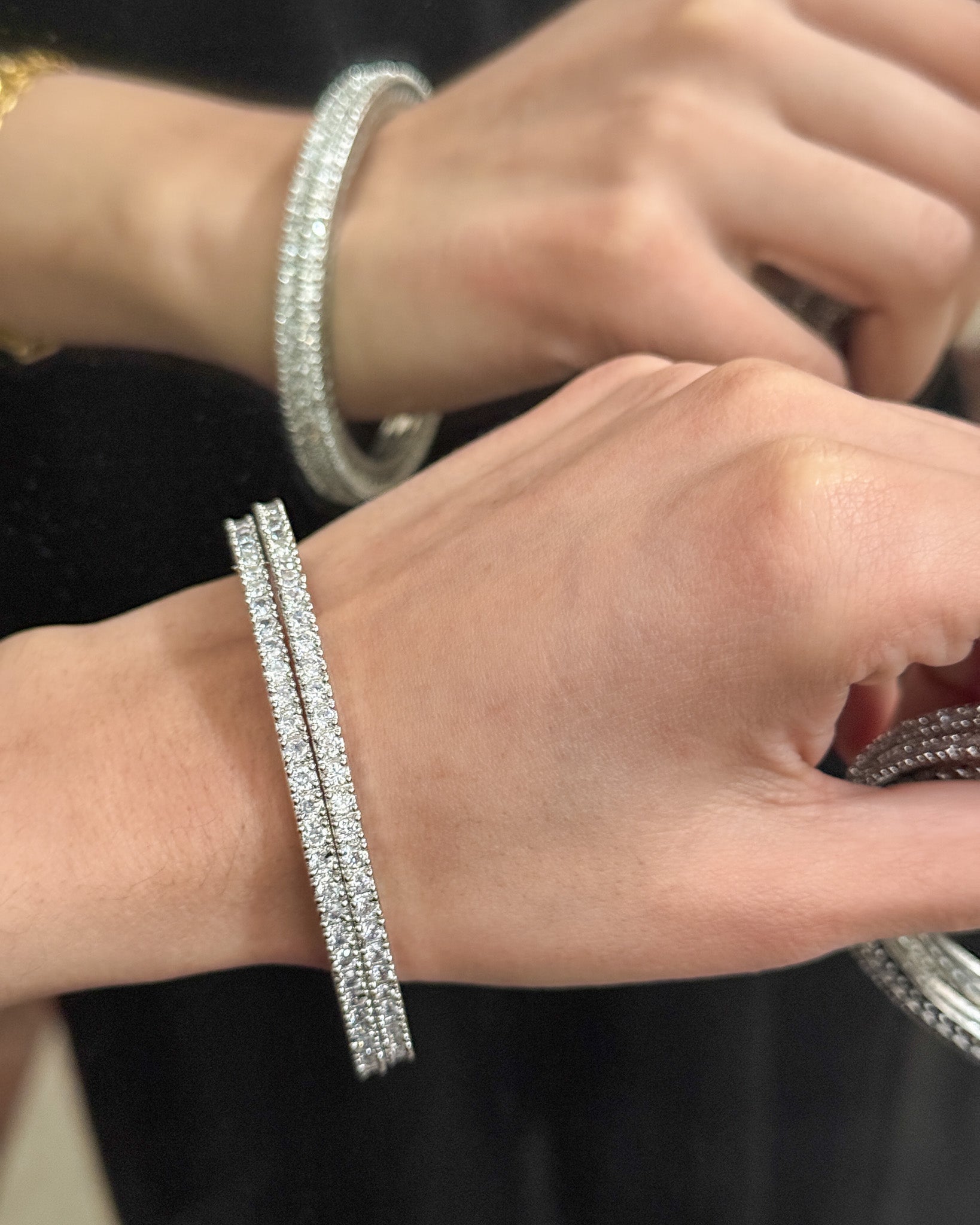 Zircon encrusted churris, handcrafted in rhodium-plated brass. The churris are sold in pairs (two). Best paired with our Cleopatra churris.